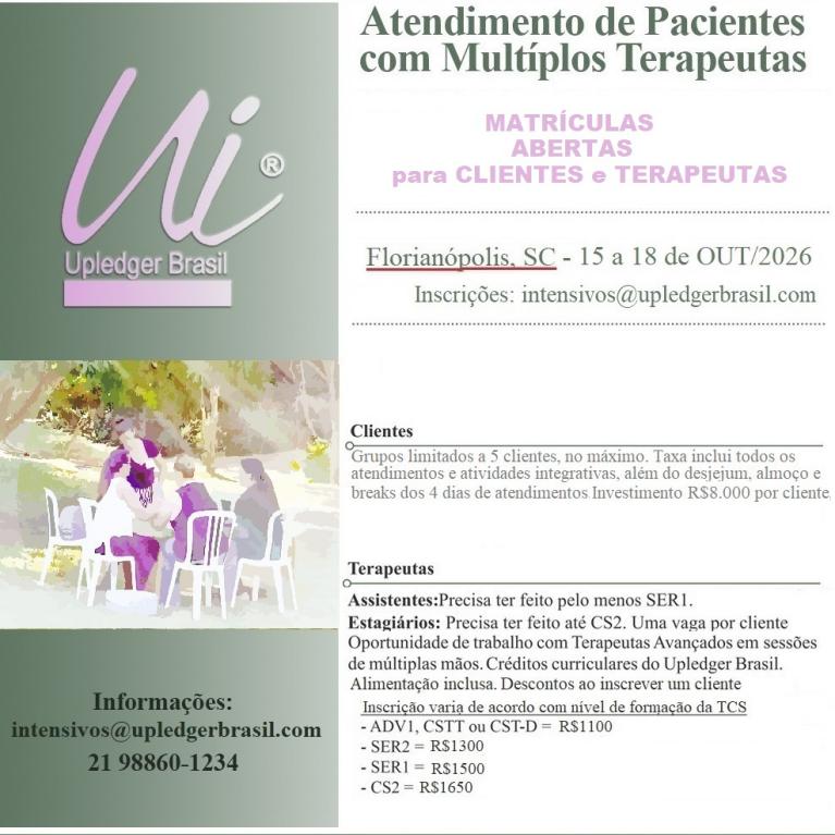 Todos os IPTC no Brasil precisam ser reconhecidos e listados pelo Upledger Brasil. Para maiores informações entre em contato pelo intensivos@upledgerbrasil.com